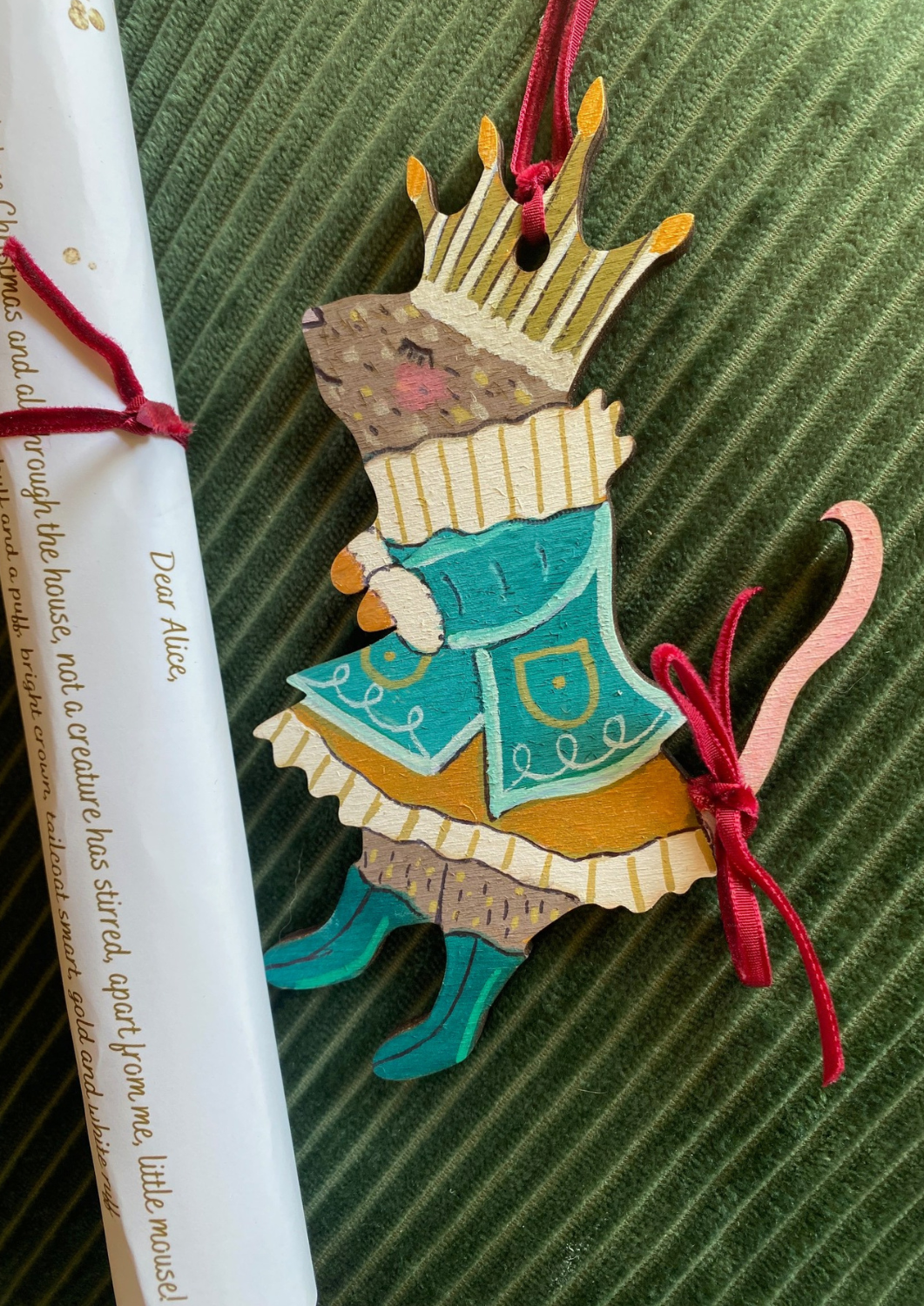 It’s the Eve before Christmas and all through the house, not a creature has stirred, apart from me, little mouse! I’ve been busy, pitter pat, with a huff and a puff, bright crown, tailcoat smart, gold and white ruff. The softest green boots, ready to welcome winters night, bells will ring overhead from a starry sleigh in flight! Diamonds on my crown shining like the sky above, to be here, with you, I feel so very loved! Tip tapping along the skirting board, the house is looking fine, a hurry and a scurry, oh how the lights shine! Darting back and forth, my beady eyes are tired, this is a fine place to be and one I’ve long admired